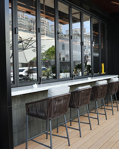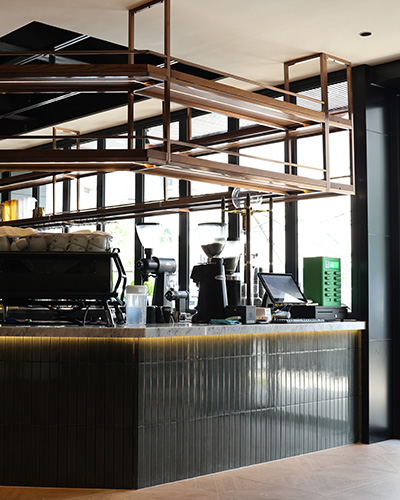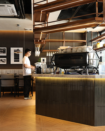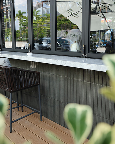 Этот проект, расположенный в шумном городе Шанхай, включает в себя шикарную кофейню, в которой использовалась «Конкорд» - CC35 Decor Tile для столешницы, а также в помещении и на открытом воздухе. Мягкий серо-зеленый оттенок плитки, преобразованной в печи, приносит воздух элегантности и загадки, создавая роскошную атмосферу. Его удлиненная форма и чистые симметричные линии улучшают визуальную привлекательность, предлагая утонченную и сбалансированную эстетику.