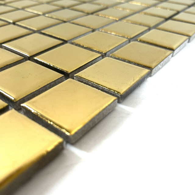 Керамическая плитка золотой мозаики - это элегантный и роскошный вариант для дизайна интерьера, сочетающий вневременную красоту мозаичных узоров с богатой, роскошной привлекательностью золота. Эти плитки обычно изготовлены из керамических материалов, с золотой тональной глазурью или отделкой, которая дает им потрясающий металлический блеск. Они часто используются для создания жирных, сложных акцентов в таких пространствах, как ванные комнаты, кухни, характеристики и стены.