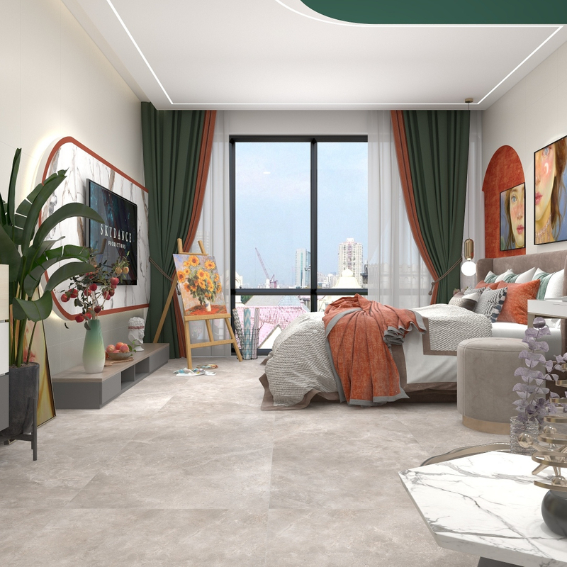 Использование серого каменного вида для спальни - отличный способ создать элегантную и сложную атмосферу. Плитка предлагает вечный и классический вид, который можно в сочетании с различными стилями мебели и акцентов. Они также легко очистить и поддерживать, что делает их практическим выбором для любой спальни.