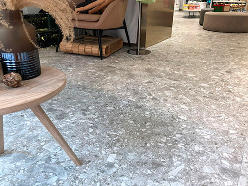 Наконец, мы предлагаем: самый популярный Terrazzo Time. Terrazzo Look Plile имеет особый дизайн стиля, но не причудливый. Он принадлежит универсальному, и он очень подходит для всех видов коммерческого пространства, а также для улучшения чувства пространства моды, но не будет противостоять правилам. Например, Южная Корея Старбакс Строительство использовала этот продукт нашей компании.