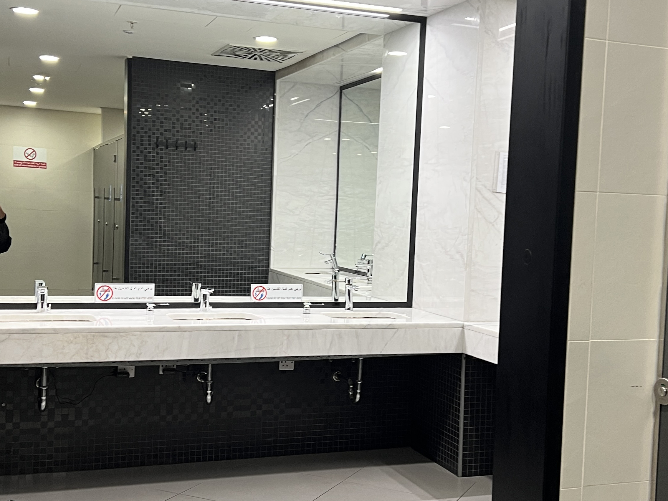Отличительной чертой этих туалетов является широкое использование фарфоровой мозаичной плитки, покрывающей обширные площадь 780 квадратных метров. Выбор черной гладкой и подповерхностной плитки в конфигурации мозаики 1: 1 излучает изысканность и однородность. Этот тщательный дизайн не только изображает высокий уровень уточнения, но и устанавливает чувство точной и единой элегантности, повышая опыт уборной для посетителей.