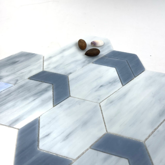 Преобразуйте свое пространство с безмятежной красотой нашей яркой синей витражей мозаики для внутренних стен.